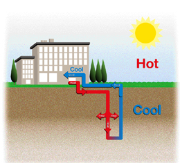 空调本身是一种能量转移运输的工具,在运行时热泵机组只需要付出较小的能量投入即可吸取存储在地下的大量能量。